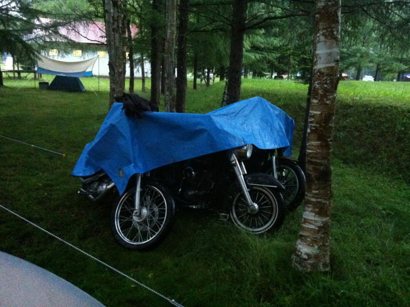 バイク達も雨宿り