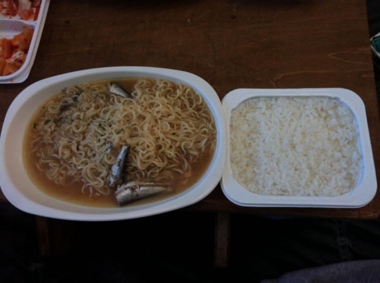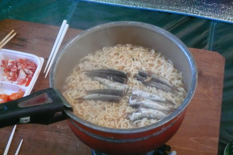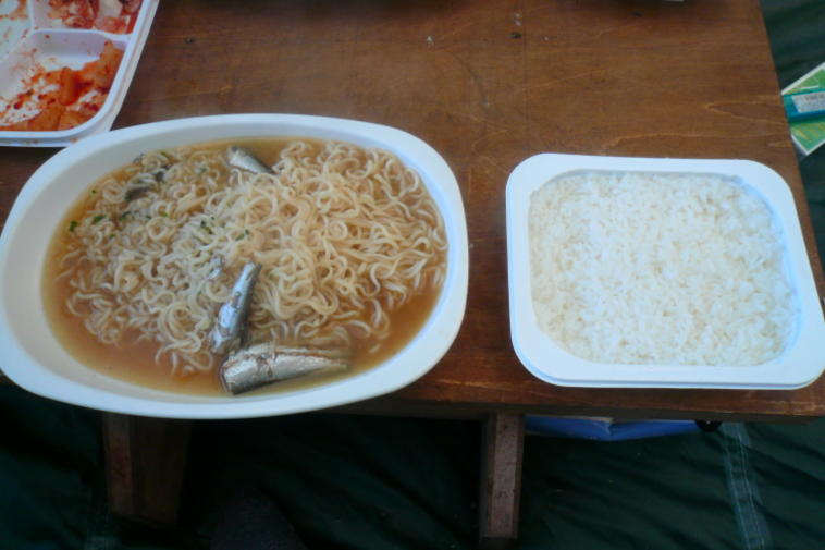 朝食は昨夜の残り物イワシのオイルサーディンを投入したインスタントラーメンでしたが