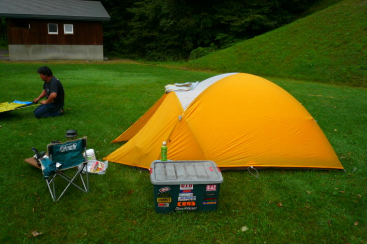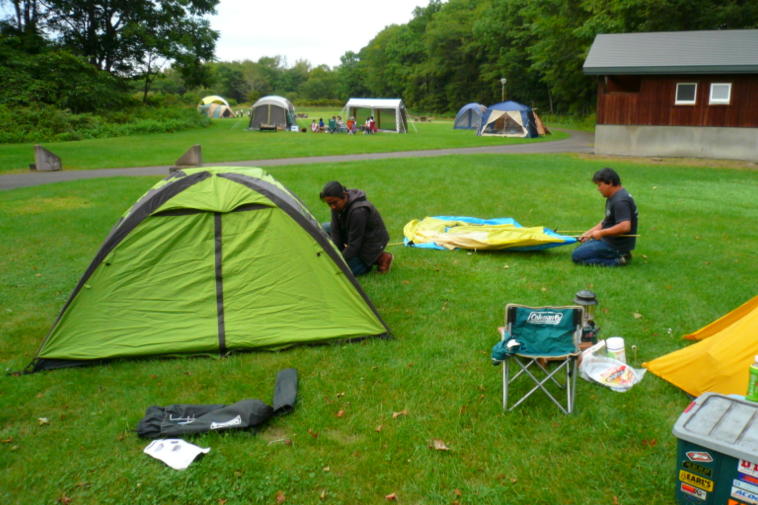 キャンプ場到着!芝生も手入れされており綺麗なキャンプ場でしたよ。