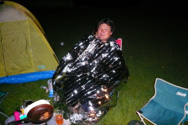 それにしてもこの携帯用保温シート!眩しすぎる!!